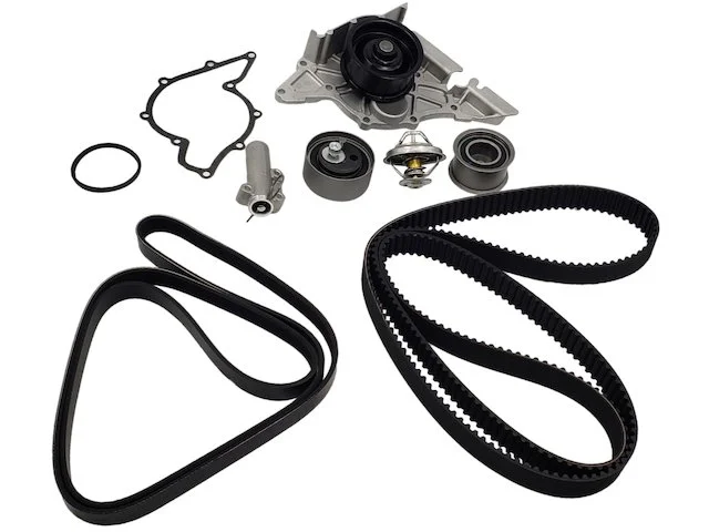 Important Note: Kit Includes; (1) Timing Belt, (1) Water Pump, (1) Water Pump Gasket, (1) Timing Belt Hydraulic Tensioner, (1) Timing Belt Tensioner Roller, (1) Timing Belt Idler, (1) Serpentine Belt, (1) Thermostat, and (1) Thermostat Gasket